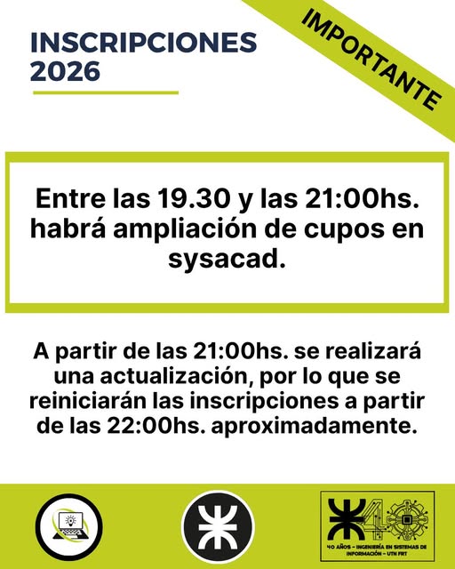 Les recomendamos aprovechar estos días previos a la habilitación de inscripciones para organizar su cursado y planificar sus horarios. A...