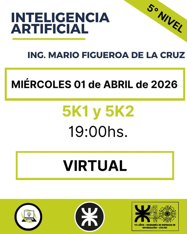 Damos inicio a la cursada de Inteligencia Artificial junto al Ing. Mario Figueroa de la Cruz. Miércoles 01 de abril...