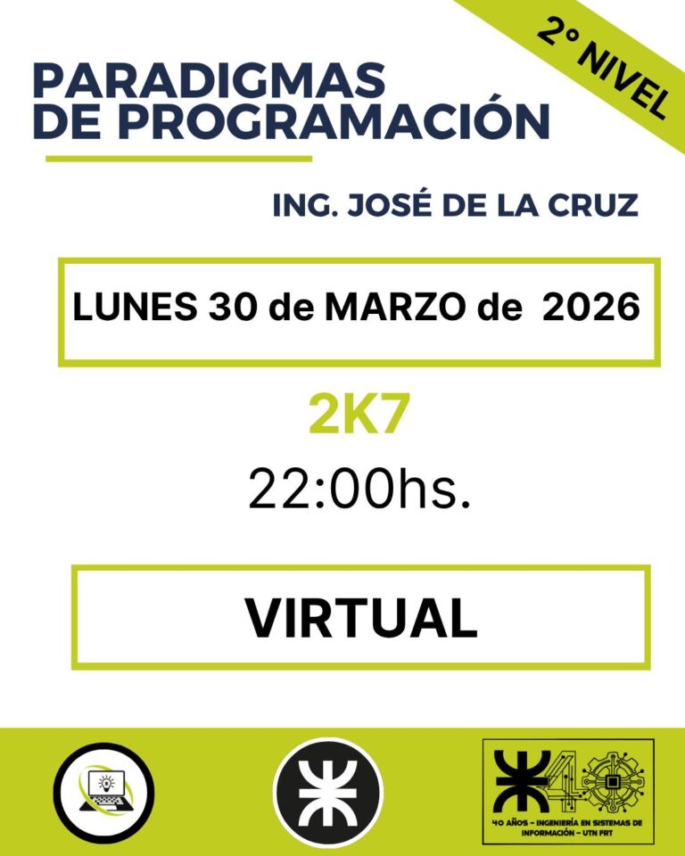 Se viene un nuevo encuentro en la cátedra de Paradigmas de Programación junto al Ing. José de la Cruz. Lunes...