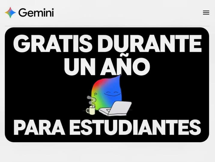 Gemini Pro GRATIS por 1 año Incluye: chats ilimitados, 2TB de Drive, imágenes, Veo3, Flow, Deep Research, NotebookLM y más...
