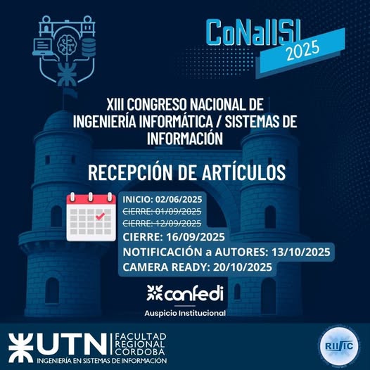 Se encuentra en marcha la recepción de artículos para el XIII Congreso Nacional de Ingeniería Informática / Sistemas de Información...